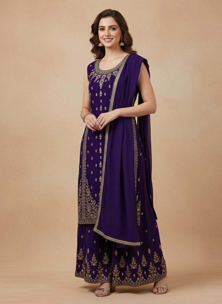 Art Silk Kameez Sharara Set with Zari Work Dupatta