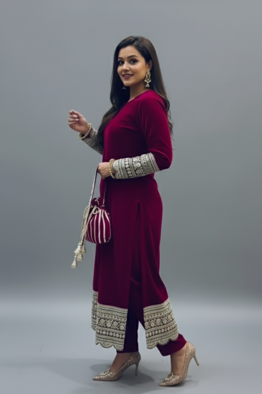 New Designer Velvet Top & Pant Set with Fancy Dupatta – Winter Collection