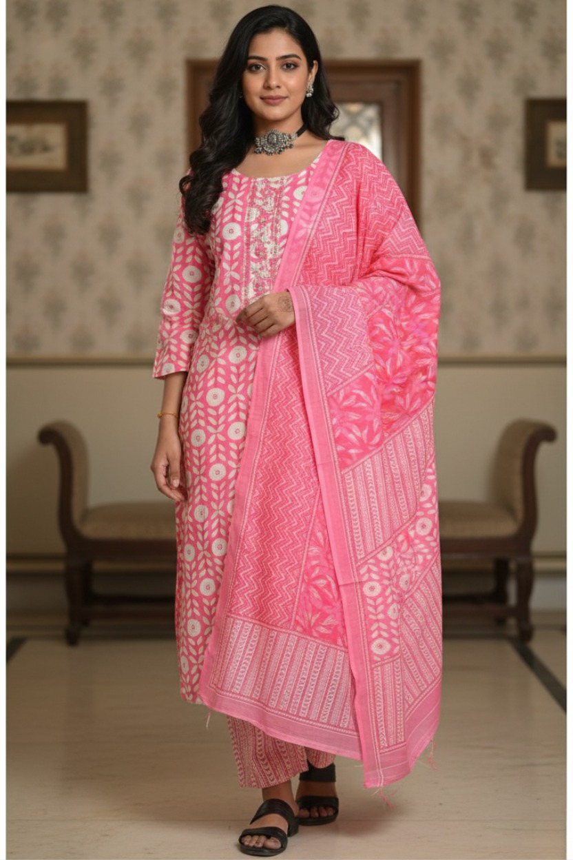 Fashion is not only about appearance; it is about confidence and self-expression. The Pure Cotton Kurta Pant Dupatta Set allows women to showcase their style while enjoying practical comfort. K & P Fashion designs each outfit to enhance individuality and elegance, making it a wardrobe essential for women who value sophistication in their everyday attire.