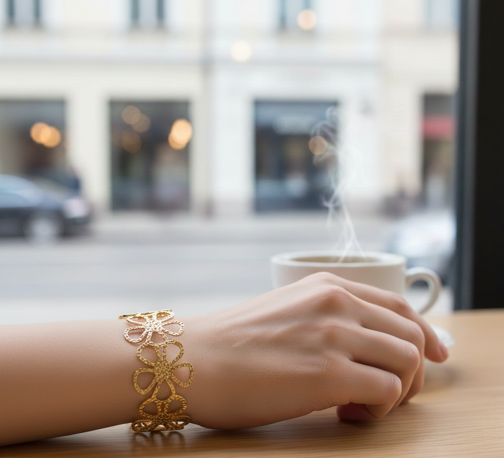 Add timeless elegance to your everyday style with this Retro Classic Floral Bracelet, crafted from premium 304 stainless steel and finished with real gold PVD coating.