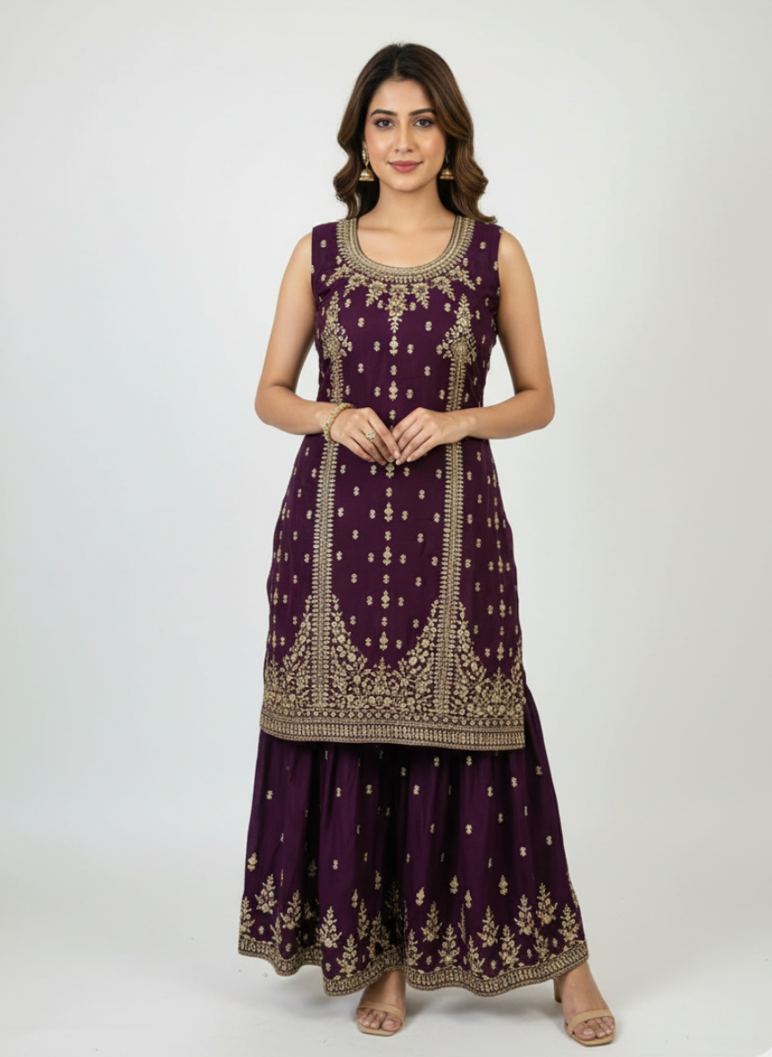 Traditional Zari Work Kameez & Sharara with Dupatta