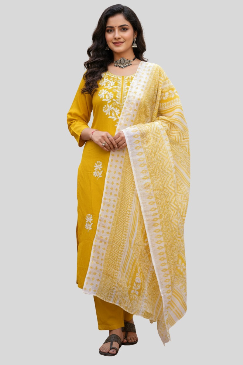 Description | Chikankari Embroidery Cotton Rayon with Pant | Fashion-forward casual wear, this outfit | Both option The sleeves of this suit are inside or can keep Sleeveless | Party ready looks with sparkle look | ||||||||||||||||||||||||||||||||
